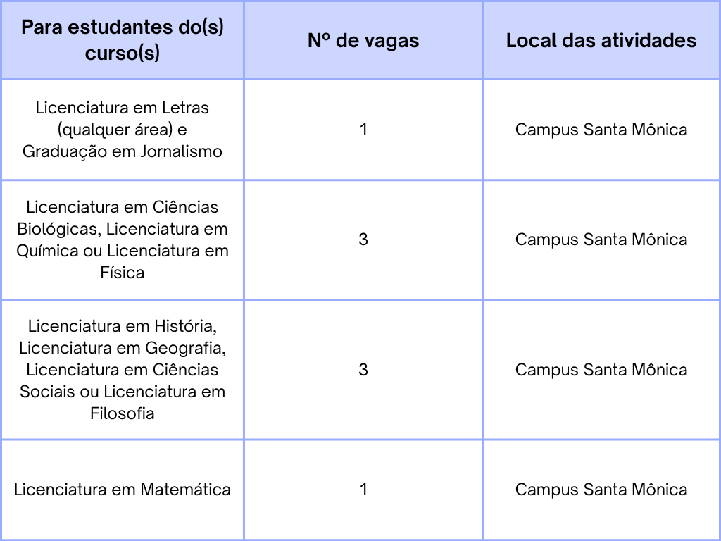 • Requisito principal: ter conhecimento nas áreas específicas de ensino de cada vaga;